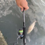 朝練50回目です! 昨日フォロワーさん達との和竿の話で和竿を使いたくなり強行出撃テープを巻いて開始。 須崎正面。昨日良かったが、今日は2アタのみ 濁りの強い右で1枚ゲット