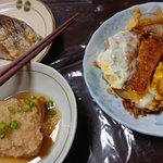 ばーんごはーん ・サゴシ焼き魚 ・トンカツ卵とじ ・厚揚げみぞれあんかけ 緑が少ない…反省 https://twitter.com/5Q9VnHguVBpDfO9/status/1431568406659014660/photo/1