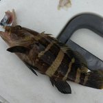 結局… 写真に写ってるタバコの箱サイズぐらいのマハタ8匹と同型サイズのメバル2匹で終了