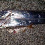 子供の話してたら明らかにカマスじゃない引き。まさかの40cm越え?位のサゴシ。リリースしようとしたらその子が食べてみたいと。お父さんにいるか聞いといで。って伝えたら食べると。美味しくないかもよー。と言っといたけど美味しくないってなるだろな