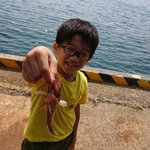 次男坊と釣り 30分程でアラカブとフグ(笑) 楽しめたみたいでした