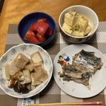 晩ごはんはトマト、キットの揚げ出し豆腐、盛り付けに失敗したサゴシの照り焼き、煮物。作り置き、買い置きバンザイ!平日在宅休肝、いただきます。 https://twitter.com/44da_schnee/status/1442464146780426251/photo/1