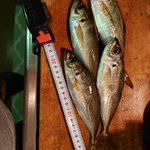 本日の釣果 豆アジ4、コノシロ1、サバ2、サッパ10位、タチウオ1(F4 103cm)