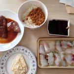 ととけんのあと、一緒に受けた方でご飯食べました オオモンハタ、マゴチ、シマアジ、タイ、スズキ、カンパチ、ニベ、だったはず、、、身の透明感や血合いの色、食感がそれぞれ違う。みんな大好き