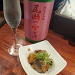 尾瀬の雪解け 純米大吟醸とお通しのブリ大根、お任せ刺身3点盛り(マグロ、ブリ、ヒラメ)。 https://twitter.com/MIZUKI_AGITO/status/1455094871321022464/photo/1