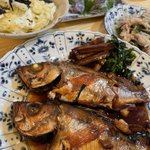 今夜はメバルの煮付け。 キャベツの塩レモン和え、真鯵の刺身、ほうれん草と豚肉のポン酢煮。 美味しいです