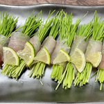 ヒラメの昆布〆で巻いた芽ねぎ すだちと塩で #おうちごはん https://twitter.com/nyannyan5555/status/1469324009737420801/photo/1