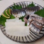 本日のメインの サゴシの炙りと アオリイカの刺身 とにかくサゴシの炙りが食べたかったんですよね 釣りに行かなくても 魚を料理してたら幸せ もはや病気です