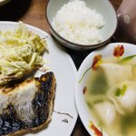 今日の晩めし サゴシのムニエル、サツマイモと玉ねぎのサラダ、水餃子入りスープ https://twitter.com/harukakain/status/1472857772585029632/photo/1
