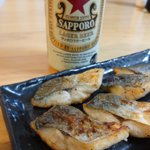 最高なサゴシのムニエルは最高な赤星で頂きます![[emoji:983]](https://cdn.blog.st-hatena.com/images/emoji/ugomemo/e-983.gif)