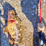爆風🥶&潮止まり釣行 根が激荒ポイントのボトムをワームでチョンチョン 一回当たるも乗らずもう一回誘い入れたらフォール中にヒット 可愛い可愛いアコウちゃん 遊んでくれてありがとう