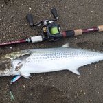 夜勤明け 某サーフで オオニベは釣れませんでしたが 人生初の サゴシ?が釣れちゃいました♪ https://twitter.com/NTi362PcgmF1X8T/status/1483008491057201155/photo/1