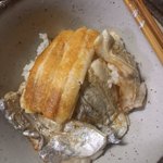 堀本商店さんの鰆(サゴシ)の干物と鯵のみりん干し。あと、こんにゃく多めの豚汁。