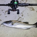 ちょっと水温が高いとこでボラが湧いてたので、ボラに引っかかったかと思ったらシーバスでした あとタケノコも