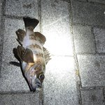 今朝もシーバス狙いでルアーを投げて来ました、大潮で気温1.5℃水温10.5℃北風4.5mの立春前の寒い朝でした。魚からの便りがなかなか無い中Sミノーを5m沈めて巻き上げたら小さな鱗が一つ、何の