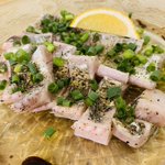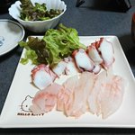 ごはん。 チヂミ山盛り(160円)とチヌ鯛の刺身(330円)です https://twitter.com/nanase_kuyou/status/1488469444573626368/photo/1