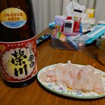 ヒラメは刺身と昆布締め。お供に日本酒。 美味すぎ。