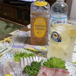 ワイン飽きた(-ω-´ ) ビールにしよ。肴はヒラメのお造り