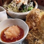 「イカ大根」🦑と「ふきのとうとメバルの天ぷら」少し前より加わった「シラスおろし」です。