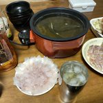 ミニすき焼き 茹で空豆 ヒラメ薄造り