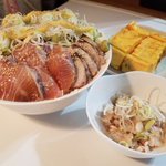 今晩は 冬タチラストだと思う 炙り塩ネギしょうが 甘めのタレに浸けたブリのヅケ ブリのヅケ炙り トリプル丼 タチウオのナメロウ 魚力さんの玉子焼き 美味しかった