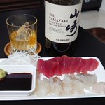 お疲れ様でした 仕事終わりからの マグロとヒラメの刺し身