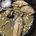 食べちゃった後🤣 メバルのアクアパッツァもどきでした。 魚の他はキノコしか入って無い