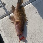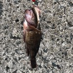 当たり全く無くてカサゴも釣れん思ってたら...モゾっ。タコ?藻?って思ったけど重み感じたけんフッキングしたらアコウ様でした