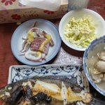 夕食 1.ブリ塩焼き 2.グリーンサラダ 3.昆布佃煮 4.生姜 5.ほうれん草お浸し 6.ごぼうとこんにゃくの煮物 7.味噌汁 8.もち麦ご飯 計:614kcal 息子お見舞いの応援に来てくれた実母が夕飯用のおかずも作ってきて… https://twitter.com/i/web/status/1513126725550743561