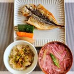 本日刺身と唐揚げとあら汁で