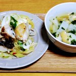 サゴシのネギ蒸し炒め豆板醤味と冷凍野菜味噌汁 https://twitter.com/wolfguys/status/1517082650372358144/photo/1