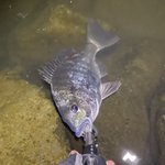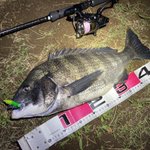 夕方から夜まで 貴重な時合にシーバスをバラしてからは狙いを変えてクロダイ