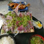 お魚が半額で買いすぎた。 (明日のもある) 大きいメバルは煮付けに。 ハマチのおさしみ、残ったから漬けにする。 #おうちごはん #雑めし https://twitter.com/amigo_kurage/status/1524347455642341376/photo/1