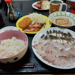 アコウ13匹コチ2匹 チヌ1匹鯛1匹を旦那さんが釣って帰ったけ 刺身とあら汁にしたよ