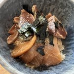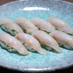 コシアブラの酢飯で 沖メバル昆布締めの握り ゴリゴリだけど美味しい