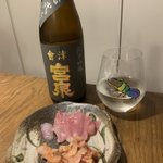 さぁ始めていきます 會津宮泉 純米吟醸 渡船弍号 ガス感弱め 酸からの苦味でキレしっかりなのであまり甘さは感じない メバルと貝ひもで優勝