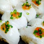 マゴチの卵は事前に一晩塩水に漬けて、焼いて焼きタラコ状にしてから、ソースにまぶしてます。