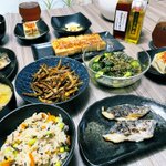 新潟の枝豆で枝豆ご飯!サゴシの塩麹漬焼き、ごぼうきんぴら、胡瓜の浅漬け、富成の冷奴。幸せご飯