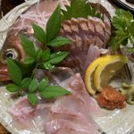 再開おめでとうー メバルの刺身 丸ごと一杯イカづくし イカは肝醤油🦑 天ぷらで風味が増す感じね 刺身は肝醤油で旨さ倍増