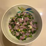 アジはたたきにしました☺️ いつも青ネギは先に混ぜてます🌪 アジはやっぱり夏の魚
