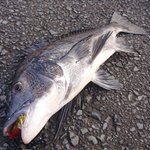 チヌです。全くあたりがない状況が続いてダメだーと思ってたら釣れました。その後セイゴゲームに行きましたがデカイシーバスをバラしました