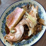 鯛めし初チャレで美味しくできました🤤 小さいお皿はマゴチでうま〜! あとはタイのアラだけ残って終わり