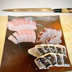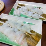 今日は ・島根県産 ヒラメ ・貝の盛り合わせ(赤貝、北寄貝、ミル貝 #刺身の報告