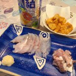 アジとマゴチの刺身、マゴチの唐揚げを酒の肴にカンパーイ![[emoji:983]](https://cdn.blog.st-hatena.com/images/emoji/ugomemo/e-983.gif)