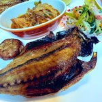 久しぶりの、晩御飯ツイ。 アジの干物、小松菜と野菜とカニカマの和え物、厚揚げの麻婆かけ、しそ梅つくね。 https://twitter.com/okirakubuchan/status/1574321079681949696/photo/1