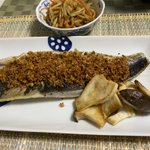 今日はサゴシをいただきました。 サワラの幼魚らしい。切身でも大きくて大ボリュームでした