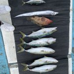 沼津沖 タチウオテンヤ いきなり1.5キロ船長GET! 今日は船長がキロアップ3枚含む15枚ほど竿頭 途中マルイカ釣ったりワームで遊んだり面白かった 明日も行くですよ!どうでしょう?一緒に 楽しいよ♪ #勘七丸 #タチウオ… https://twitter.com/i/web/status/1580207746623815680