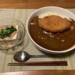 晩ご飯をいただきましたよ。釣りに行くつもりで買っておいたレトルトカレーの大辛に、お惣菜のカボチャコロッケを載せてね。明日の夕方ひとふりは何狙いにしようかな? やっぱりチヌかな ( ´ ▽ ` ) https://twitter.com/donkachi8793/status/1580533218951852034/photo/1