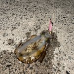 今朝アカエイとファイトして写真撮影中、隣でサゴシ狙ってた親子から「すいません、もしかしてプロの方ですか?」って! そんなファイトシーンかっこよかった?www だが残念!!イワシやサゴシとか食える魚をエサにアカエイやドチザメ狙ってリリースする頭の悪い一般人デスヽ(°∀。)ノ
