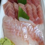 昨日釣って来たツバスのお造りと サゴシの塩焼きです